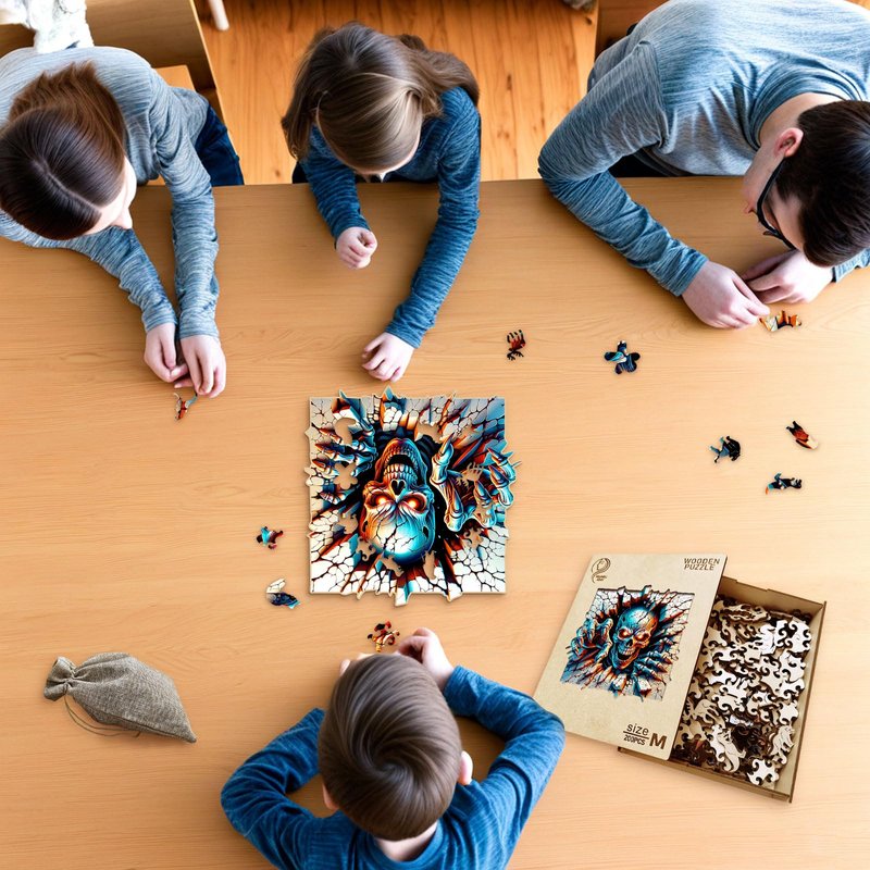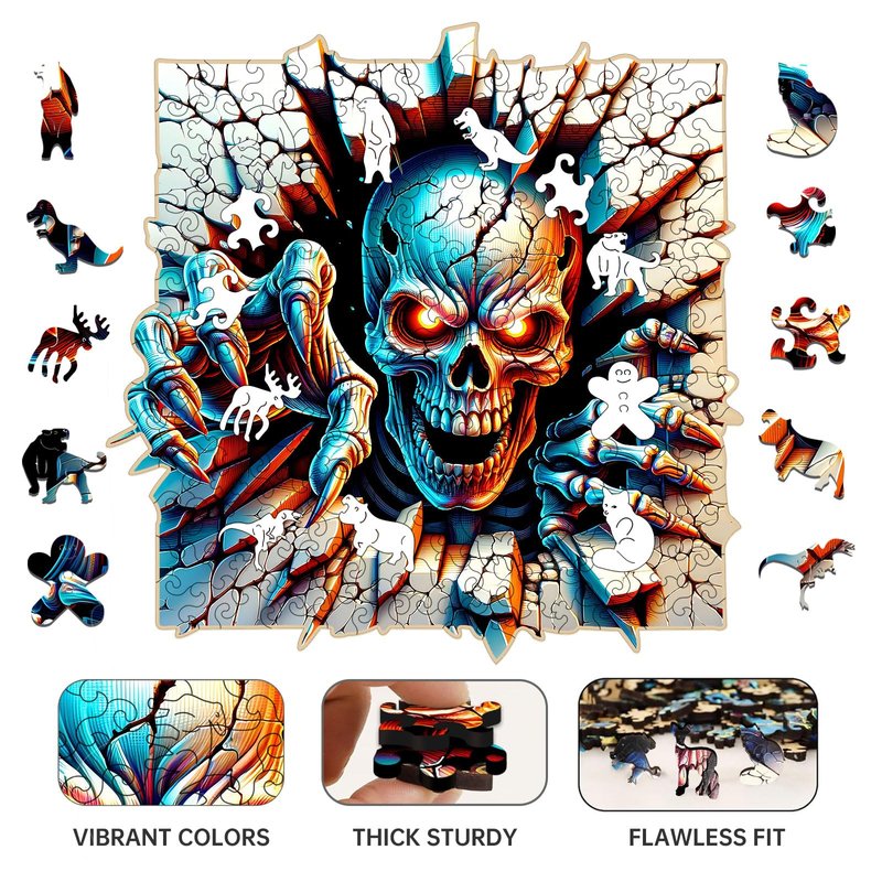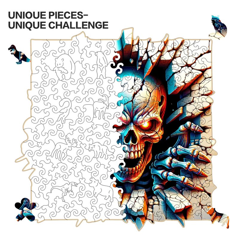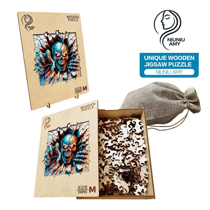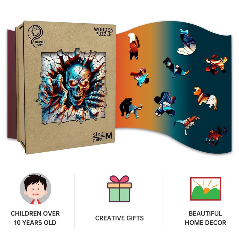 NIUNIUAMY Wooden Puzzle, Through Wall Skeleton, Adult Wooden Puzzle, Gothic Wood Carving Puzzle Designed for Family and Friends, 11 * 11 inches, 200 Pieces (Medium)