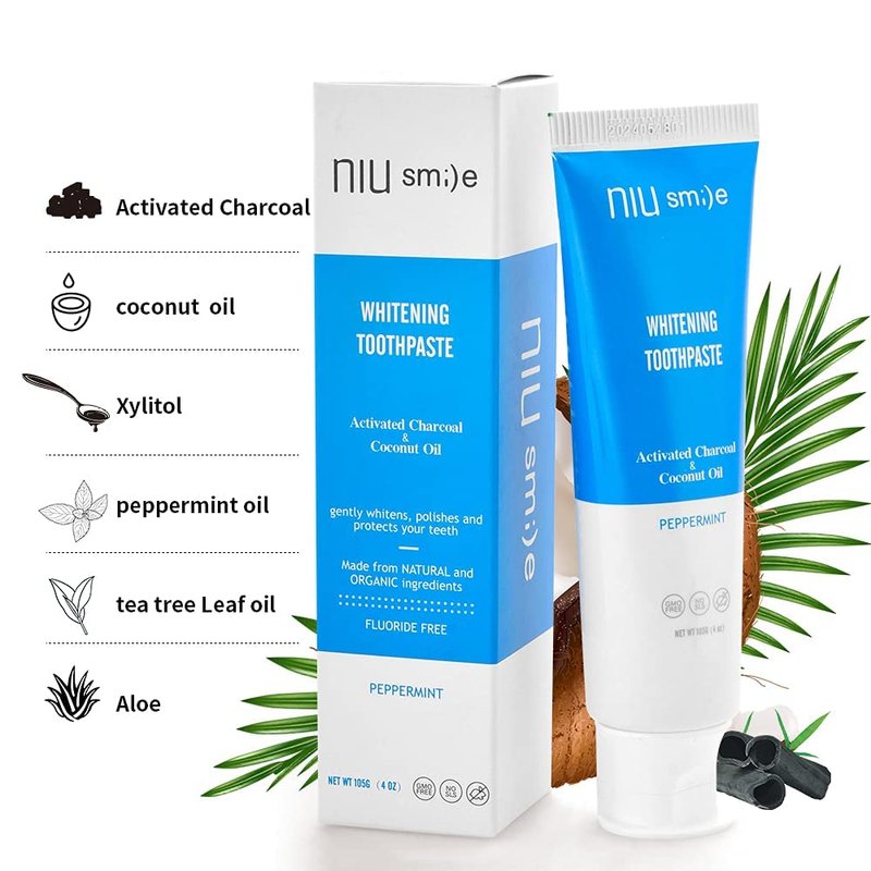 Niusmile Activated Charcoal & Coconut Oil teeth whitening toothpaste features an exclusive blend of natural and organic ingredients to gently whiten your teeth and your smile while freshening your breath. Our Fluoride free toothpaste is specially blended to be gentle and effective on enamel and safe for everyday use. Ideal for sensitive teeth.