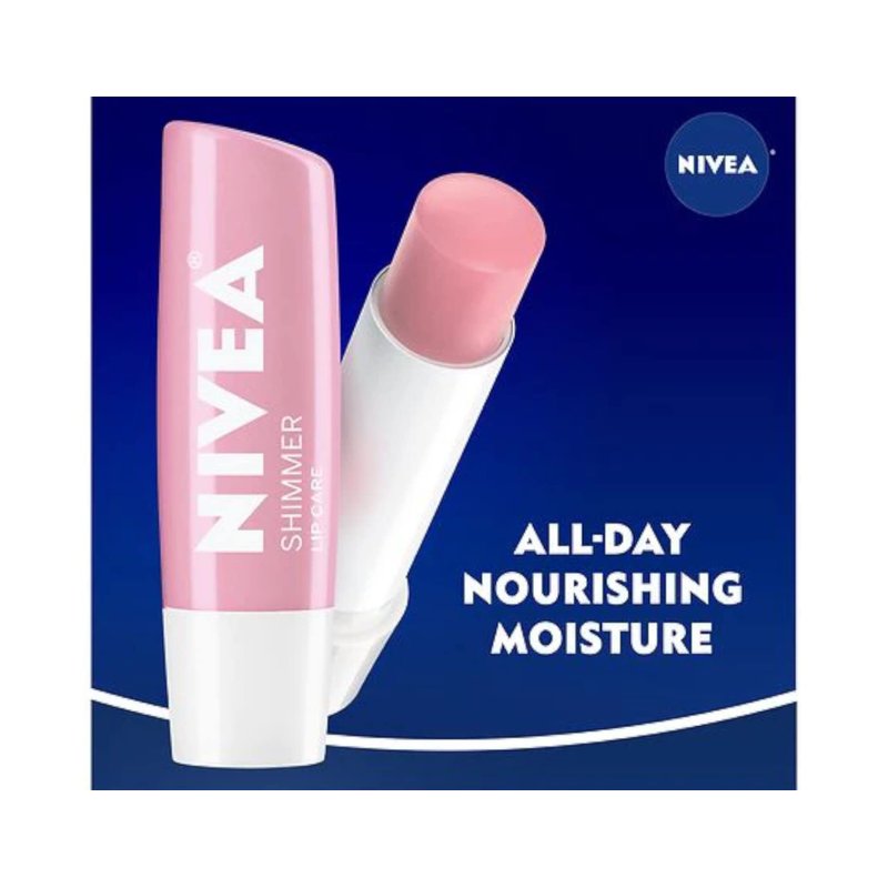 The NIVEA Shimmer Lip Care formula is Mineral Oil free and enriched with Pearl and Silk Extracts, Shea Butter, and Jojoba Oil to keep lips beautiful. The unique formula of NIVEA Shimmer Lip Care provides all-day nourishing moisture and enhances the natural beauty of your lips with shimmering pigments. This leave lips feeling super soft and looking smooth with a radiant, pearly shine. For best results, apply NIVEA Shimmer Lip Care generously to lips for the ultimate care. Skin compatibility is dermatologically tested. NIVEA Shimmer Lip Care provides lips with the nourishing care and shine they deserve.