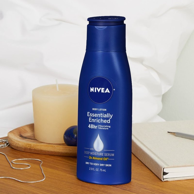 NIVEA Essentially Enriched Body Lotion, 48 Hour Moisture For Dry to Very Dry Skin, 2.5 Fl Oz