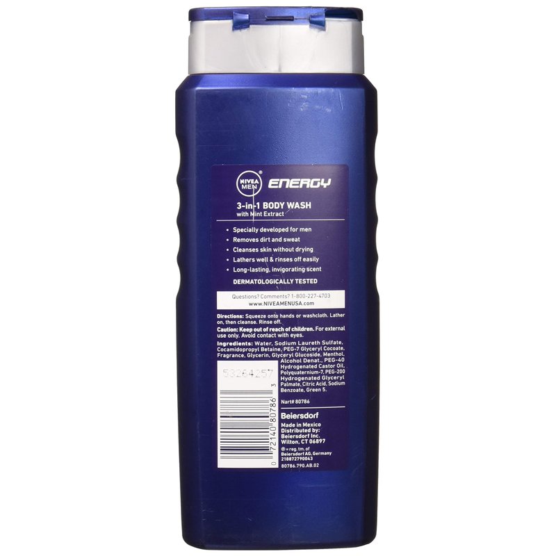 - 3-in-1: Shower, Shampoo, Energize with Mint Extract