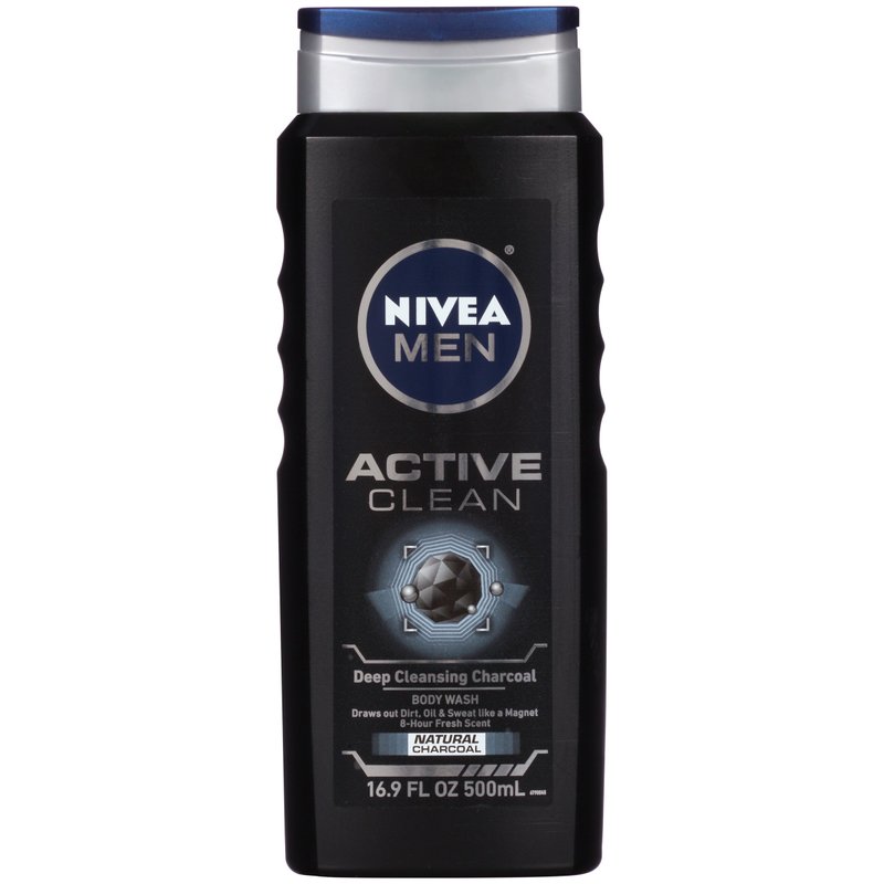 NIVEA FOR MEN Body Wash Active Clean 16.9 oz (Pack of 4)