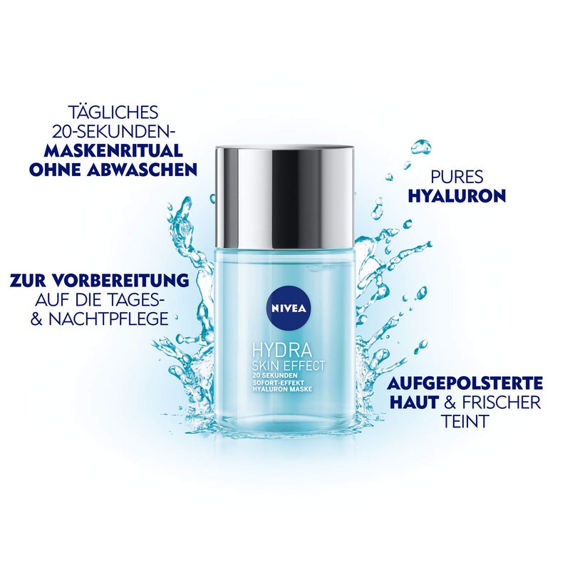 NIVEA Hydra Skin Effect 20 Seconds, Instant Effect Hyaluronic Mask, 100 ml, Face Mask for Preparing for Day and Night Cream, Mask with Pure Hyaluronic