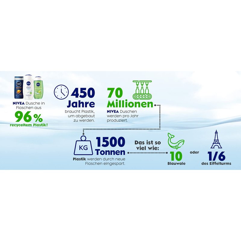 - Skin & environment - The formula without microplastic is 99 percent biodegradable and the bottle is made from 97 percent recycled material (without cap and label).