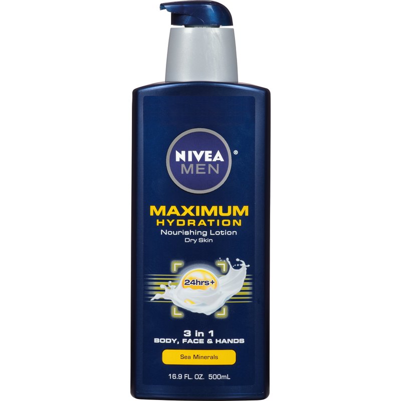 NIVEA Men Maximum Hydration 3-in-1 Nourishing Lotion - Body, Face, Hands - 16.9 fl. oz. Pump Bottle