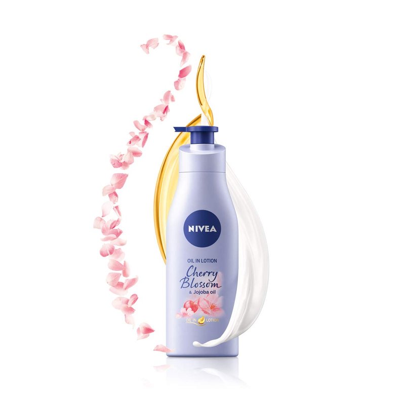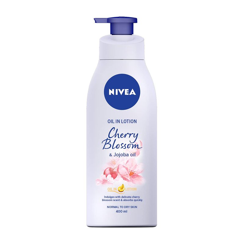 NIVEA Oil In Lotion Cherry Blossom & Jojoba Oil 400ml, Replenishing Body Lotion with Cherry Blossom & Jojoba Oil, Intensive Moisturising Cream