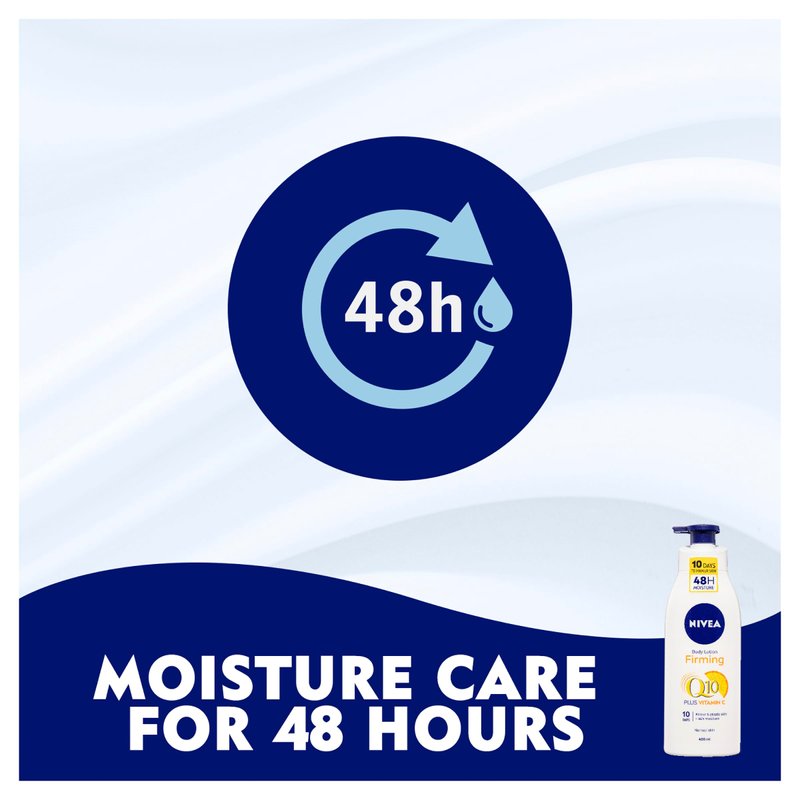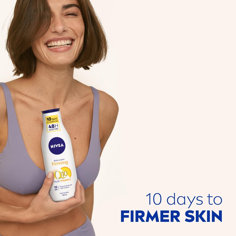 Nivea Body Firming Lotion Q10 Plus complements the skin's own energy system for improved skin firming efficacy. Additionally, intensive moisturisers leave your skin feeling soft and supple.