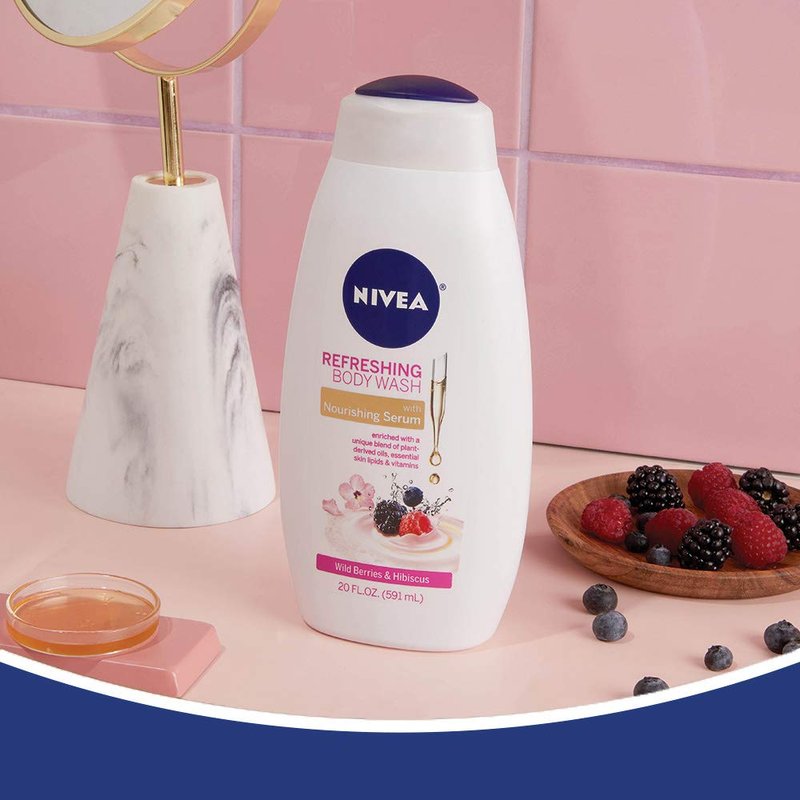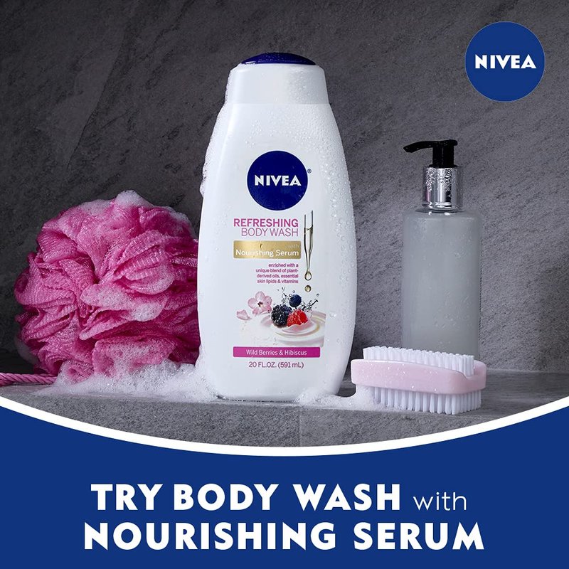 - Includes one (1) 20 fluid ounce bottle of NIVEA Wild Berries and Hibiscus Refreshing Body Wash with Nourishing Serum