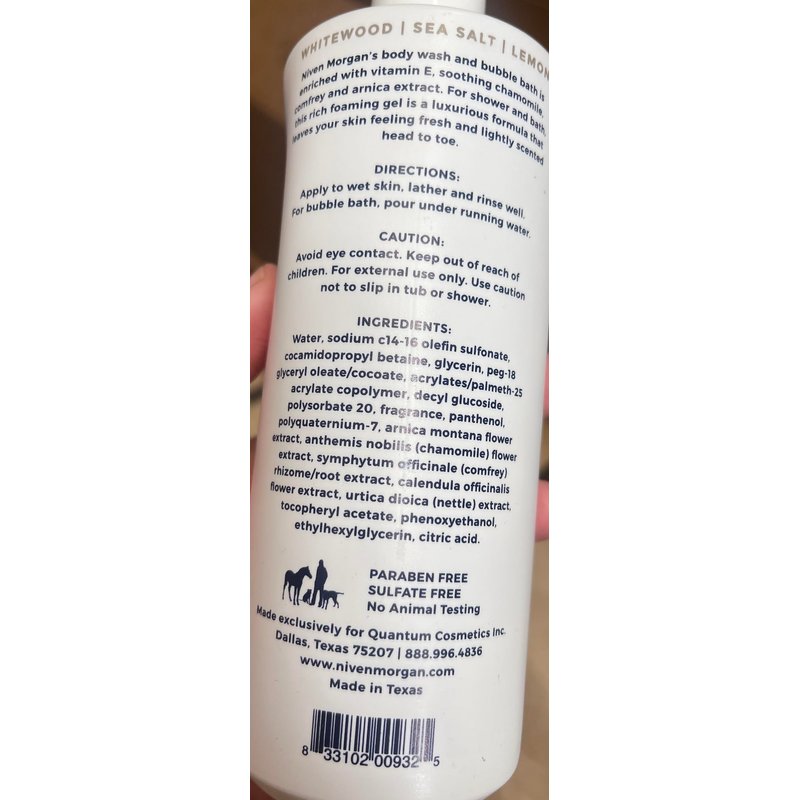 - Manufacturer: Niven Morgan Whitewood & Sea Salt Body Wash
