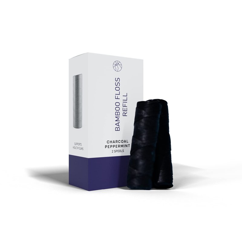 Biodegradable Vegan Bamboo Charcoal Dental Floss Refills (30m x 2) - Natural Candelilla Wax and Peppermint Essential Oil.