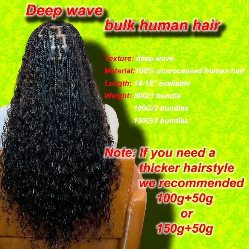 - Versatile Hair Style: The curly human braiding hair for boho braids is No Weft ,All The Cuticles Intact And Aligned In The Same Direction,and Our Bulk Human Hair for Braiding Hair is Suitable for a Variety of Braiding Styles,Such as Boho Braids, Knotless Braids, Box Braids, Cornrows,Twists and So On