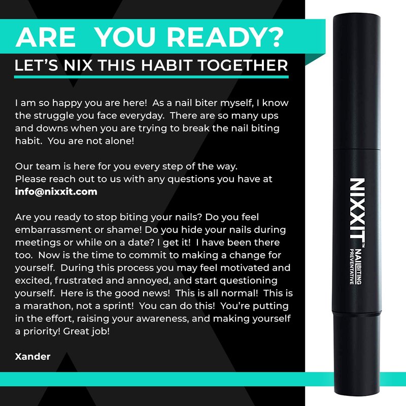 OUR COMMITMENT - We want to NIXXIT to help stop nail biters across the world, if for any reason you aren’t satisfied please feel free to reach out, our customer service team is available to you every step of the way. We want you to be 100% happy with your purchase and we stand by the quality of our products.