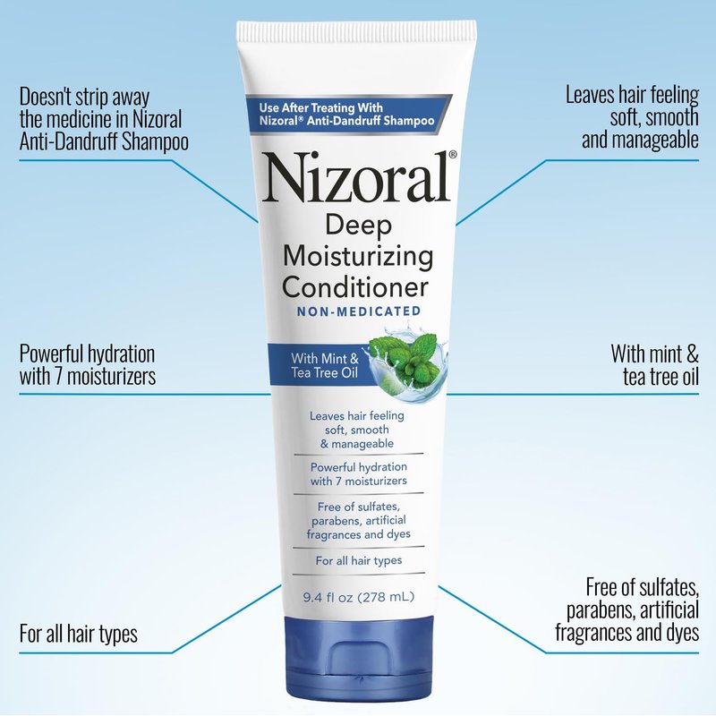 Nizoral Deep Moisturizing Conditioner with Mint & Tea Tree Oil for All Hair Types - Free of Sulfates, Parabens, Artificial Fragrances and Dyes, 9.4 oz