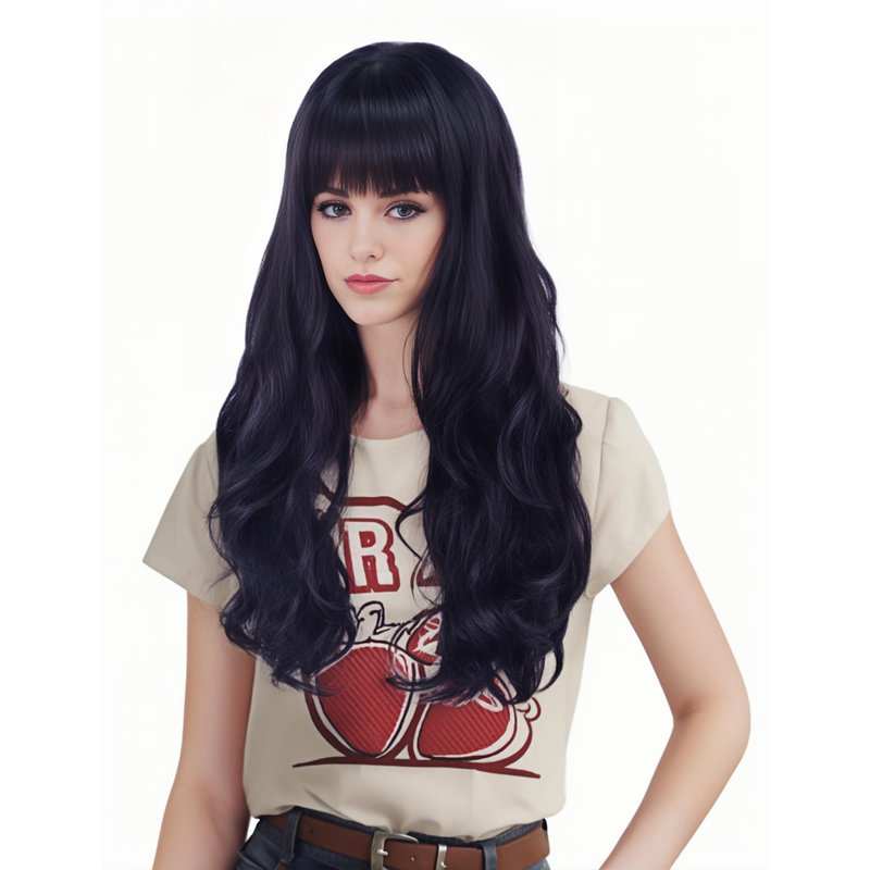 - [Fashion Style] Color is black,it's the most popular color now. Wave style gives you a brand-new look.Wavy hair matching the hair bangs style shows your pretty and charm.This long wavy wig has a natural look and movement,stylish and trendy.