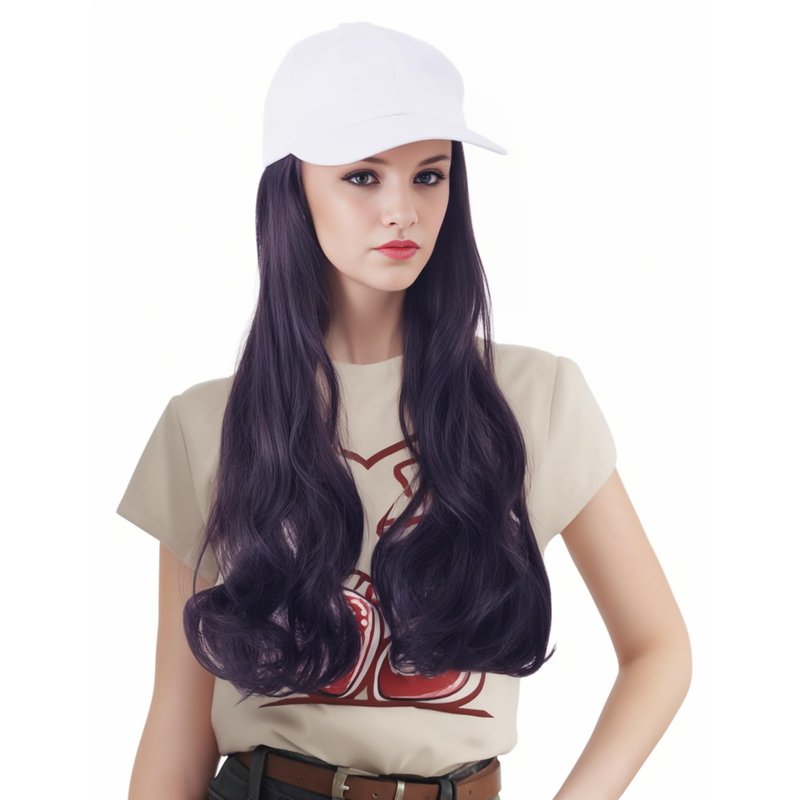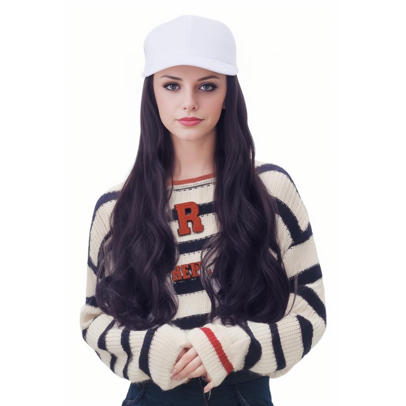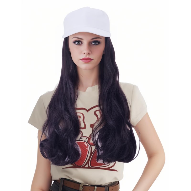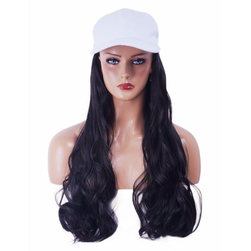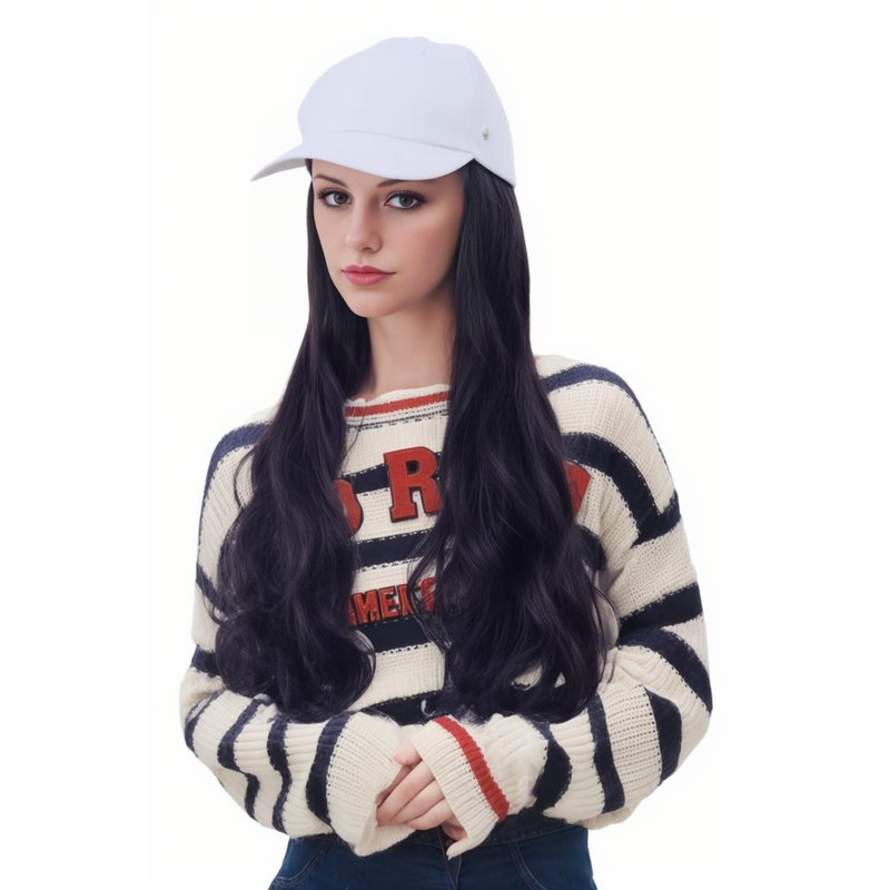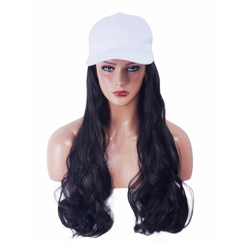 NJJYXH White Hat Wig for Women Long Wavy Baseball Cap Wig with Curly Hair Extensions Synthetic Black Wig Adjustable Baseball Hat