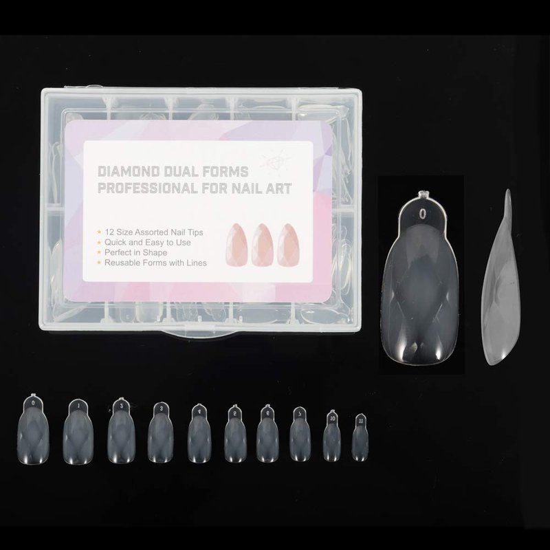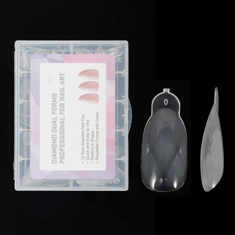 NMKL38 120PCS/Case Diamond Dual Forms for Polygel Nail Extension Mold Clear Full Cover False Nail Tips Hybrid Gel Acrylic Nail System Forms 12 Sizes