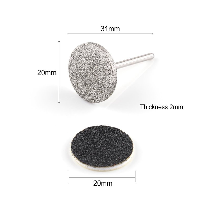 NMKL38 20mm Diamond Grain Nail Drill Bit Sanding Disc for Nail Tips Shape Grinder Cuticle Cutter Shaft Grinding Head (20MM) with 2 Sanding Paper