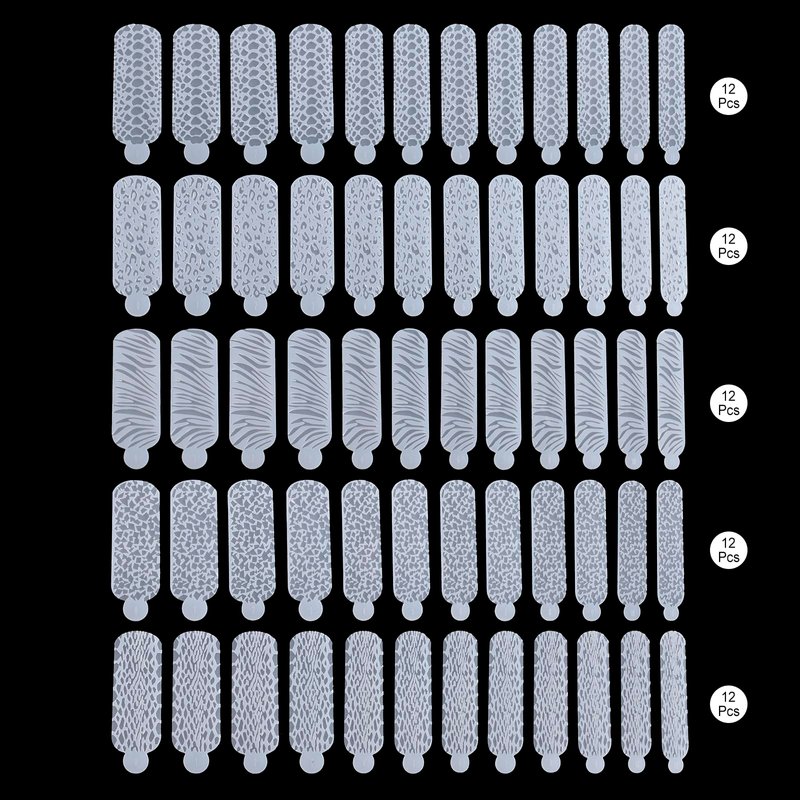 - Package: 1 styles/12pcs ; 5 style, total of 60 pieces 3D silicone dual nail forms