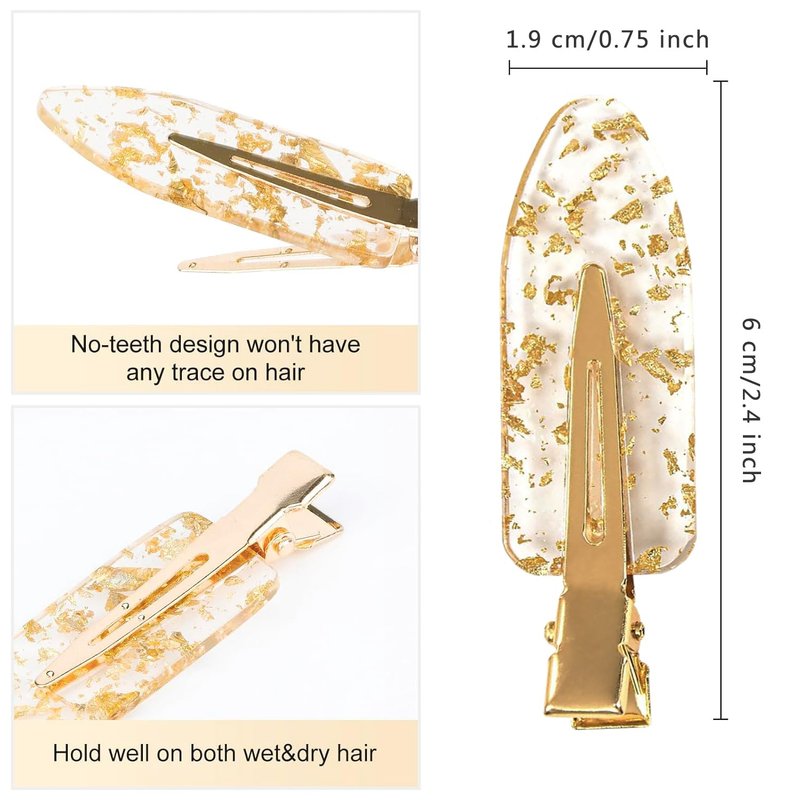 Product description Specifications: Material: Plastic and metal Color:Gold Glitter hair clips Size: 2.4*0.75inch / 6*1.9cm(including clip part) Multi functions: 1. Using for pinning your bangs back to wash your face 2. Hold your side hair up with these cute clips when you make up without leaving hair bends and no damage to your perfect hairstyle. 3. Came in handy for holding hair back when getting makeup done the morning of the wedding,they are a prefect addition to bridesmaid proposals gift. 4. Suitable for women, girls, kids, adult and good for all hair types, can use it with wet or dry hair. A great hairdressing accessor for hair salon, barber, stylist and so on. Brand 'Dingyijie' is Committed to creating high-quality and exquisite novelty gifts. please search 'Dingyijie' for more!