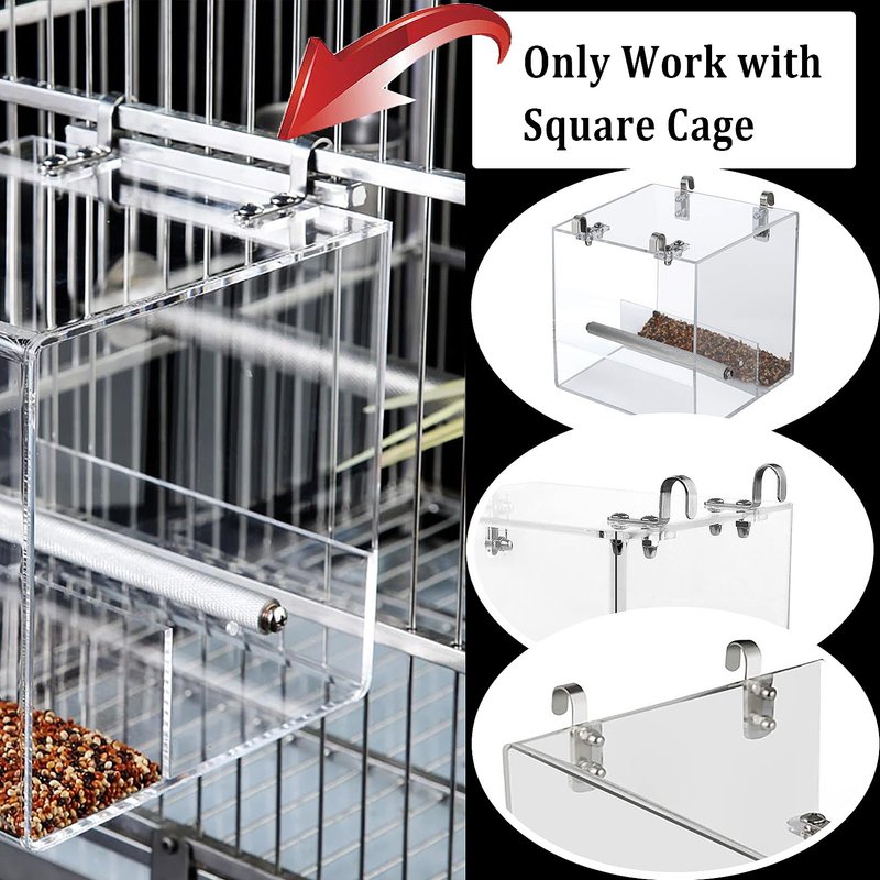 No Mess Bird Feeder for Cage Bird Feeder Automatic Bird Cage Feeder, Acrylic No Spill Bird Feeder Cage for Parakeet Parrot Cockatiels Cockatiels Lorikeet Lovebirds Cage Seed Feeder 6.4inch