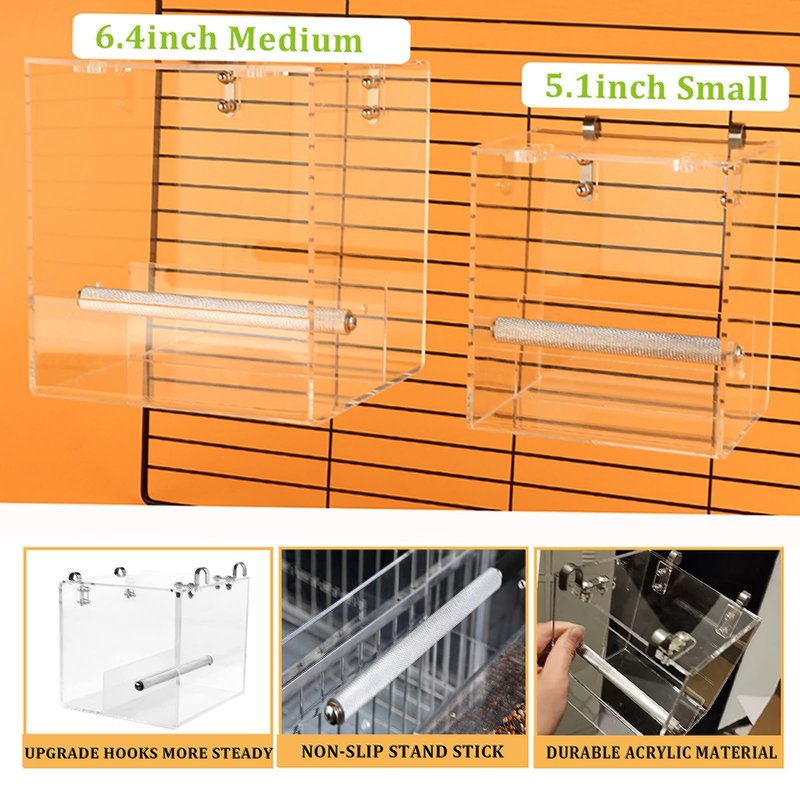 - 【DURABLE ACRYLIC MATERIAL & WELL MADE】: Thick transparent acrylic bird feeder no mess with perch more healthy and durable. Transparent materials allow you to watch birds easily and comfortably. Well made edge is smooth and won't scratch people or birds. Even prove a comfortable touches it for birds.