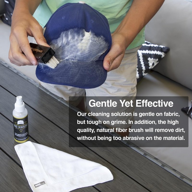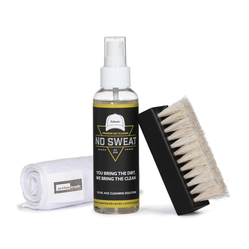 No Sweat Premium Hat Cleaner. Includes 4 OZ of Cleaning Solution, Microfiber Cloth, & SOFT Bristle Brush. Works great on all of your favorite hats