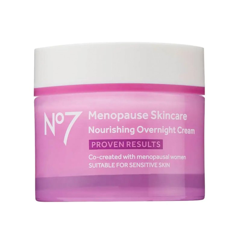 No7 Menopause Skincare Nourishing Overnight night cream for face is a facial menopause cream co-created with menopausal women and dermatologist approved for menopausal skin. Supporting skin during its natural overnight repair process, this menopause night cream is proven to deliver hydration to dry, menopausal skin. It is also a night cream for women anti aging skincare users will love adding to their nightly skincare routine.