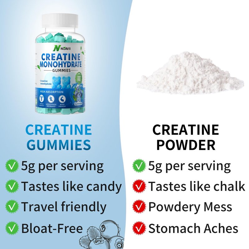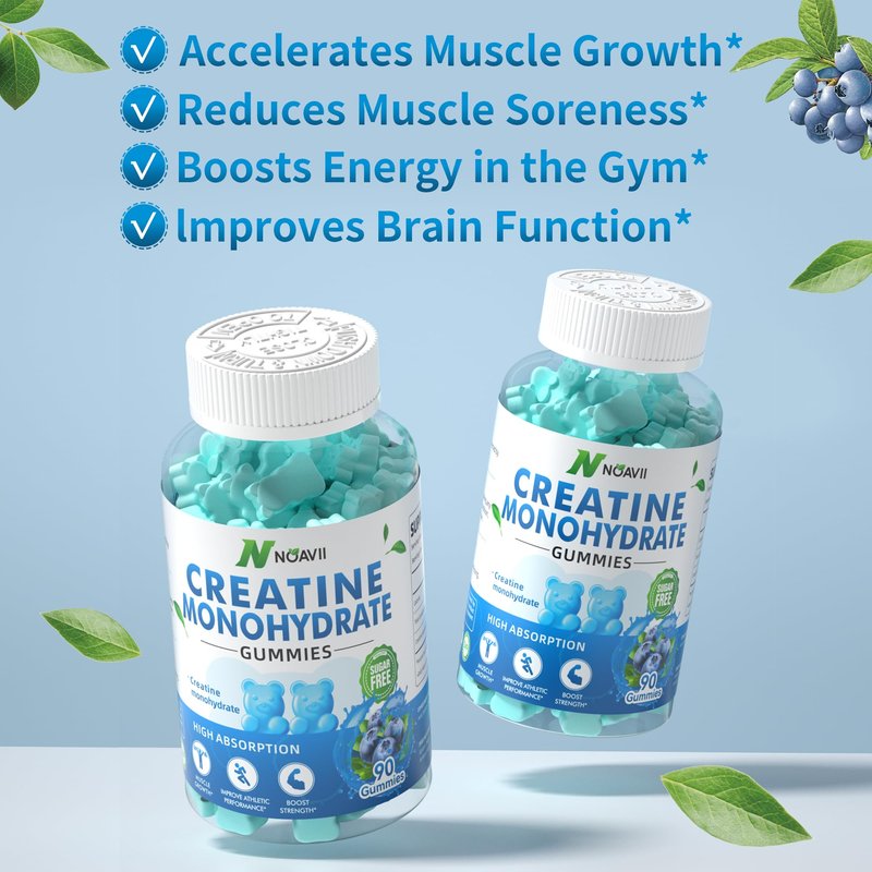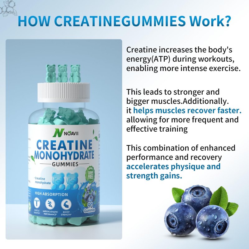 NOAVII Creatine Monohydrate Gummies 5000mg for Men & Women, Chewables Creatine Monohydrate for Muscle Strength, Muscle Builder, Energy Boost, Pre-Workout Supplement(90 Count)-Blueberry