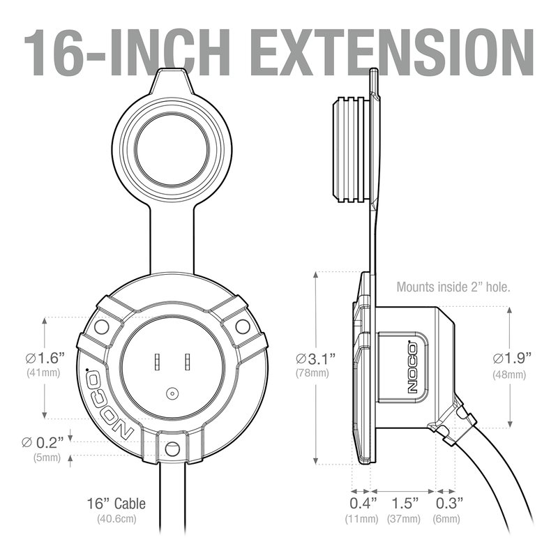 NOCO GCP1 15A AC Port Plug, 125V Power Inlet Socket, and Waterproof Electrical Outlet Receptacle Box with 16-Inch Integrated Outdoor Extension Cord