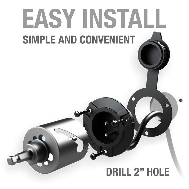 - Plug-N-Play - A simple flush mount flanged power inlet that's easy to install, requiring zero cable modification or hand wiring, and mounts into a 2-inch hole size.