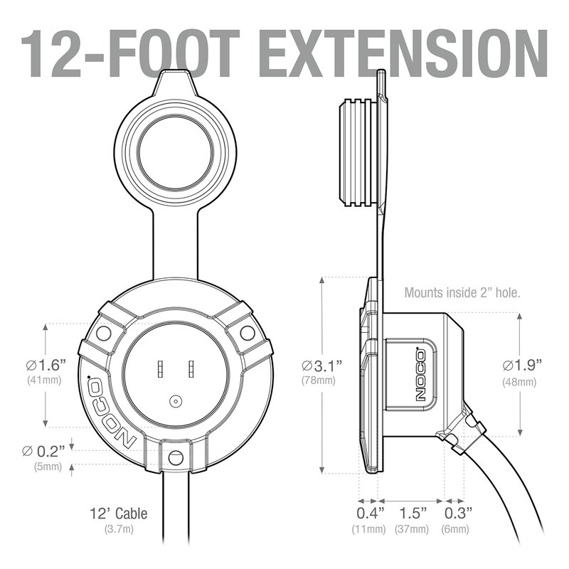 NOCO GCP1EX 15A AC Port Plug, 125V Power Inlet Socket, and Waterproof Electrical Outlet Receptacle with 12-Foot Integrated Outdoor Extension Cord