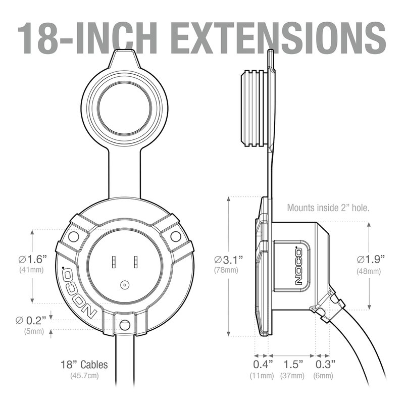 NOCO GCP2 15A AC Port Plug, 125V Power Inlet Socket, and Waterproof Electrical Outlet Receptacle Box with Dual 18-Inch Integrated Outdoor Extension Cords