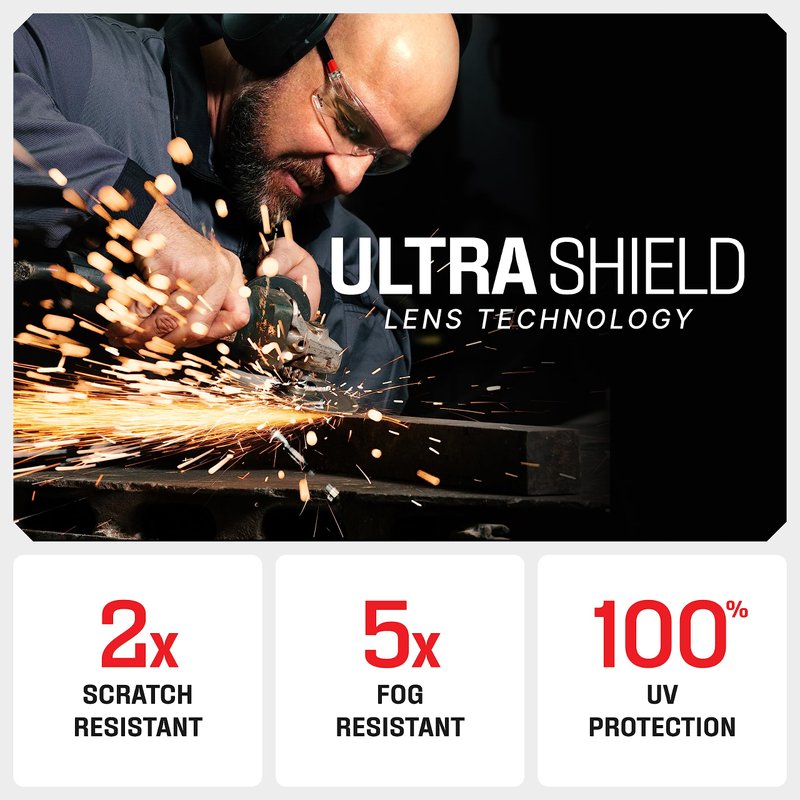 - ULTRASHIELD LENS TECHNOLOGY — Compared to most clear protective glasses, the premium coating on our safety glasses anti fog is 5x more fog resistant and 2x more scratch resistant. No fog, no scratch, and zero optical distortion.