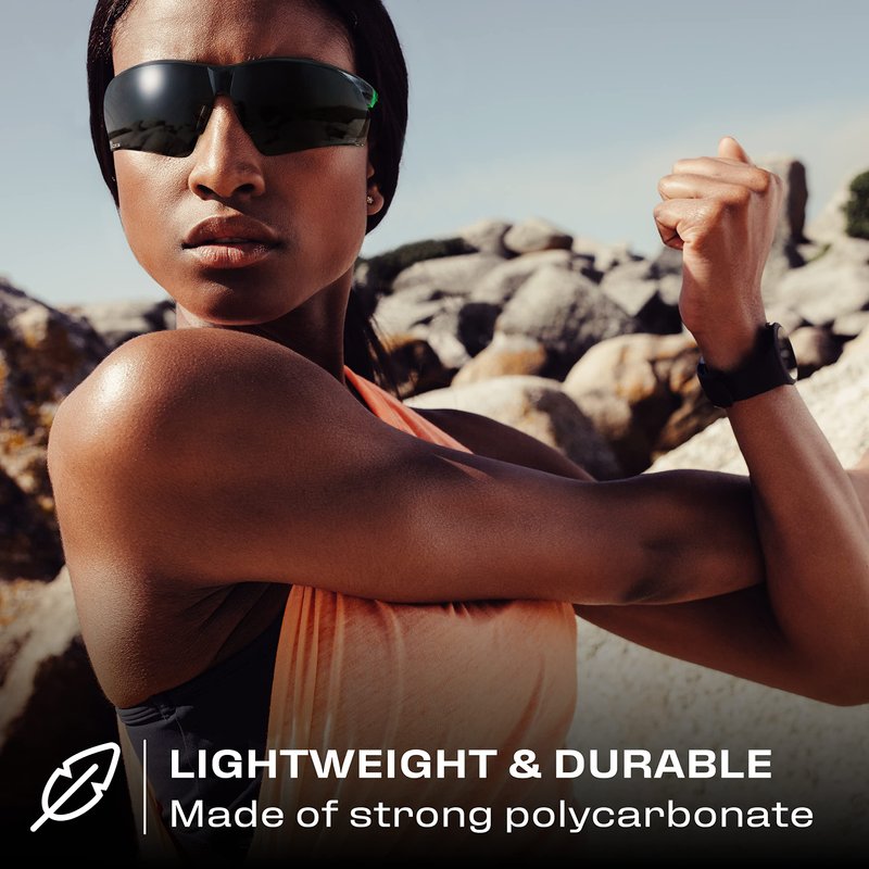 - TOUGH, DURABLE CONSTRUCTION. The strong polycarbonate wraparound design provides superior impact protection, so your eyes stay safe from all angles. Use your shaded safety glasses for running, cycling, driving, or work that needs PPE eyewear.