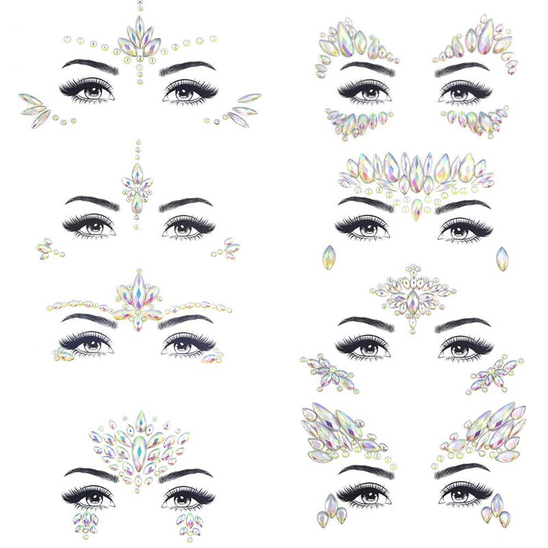 - ❤【DIY Your Own Makeup】: Can be DIY on anywhere, like your face, forehead, eyebrows, cheeks, around your eyes, stomach, chest, back,arms, hands, waist or legs. Just place the gems on your face and body, so easy to use but immediately makes you different and glamorous;