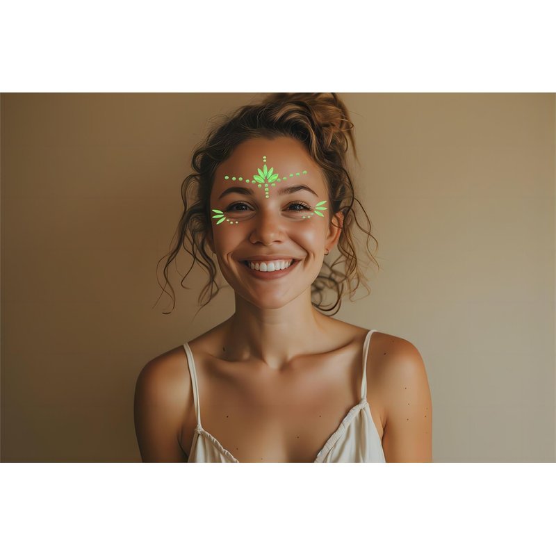 Place it on your face, forehead, eyebrows, cheeks, around your eyes, stomach, chest, back,arms, hands, waist or legs on the beach, by the pool, at the club, even on traveling and take the photos;