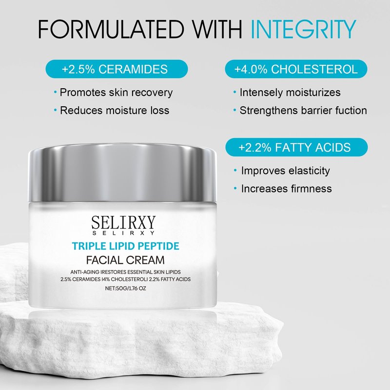 - Upgrade formula - Triple Lipid Peptide cream is uniquely mixed with 2.5% pure ceramide, 4% natural cholesterol and 2.2% fatty acid to target the root of aging and make skin look younger.