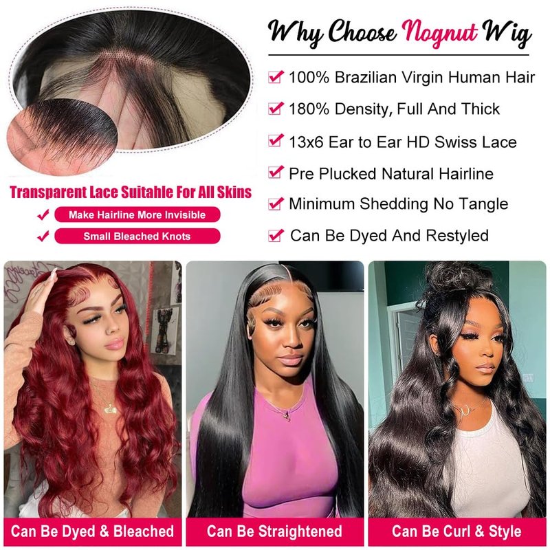 - 13x6 Lace Front Wigs Human Hair: 13x6 HD Lace Frontal Wigs Human Hair, 180% Density Brazilian Virgin Body Wave Wigs Human Hair, Natural and Healthy, Soft and Comfortable