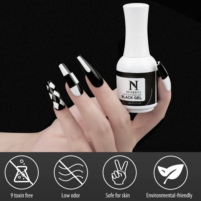 - EASY APPLICATION : With improved consistency of gel nail polish, the gel nail polish set are smooth and easy to apply. UV/LED lamp required, we suggest cure for 60-120s to dry the black and white gel polish.
