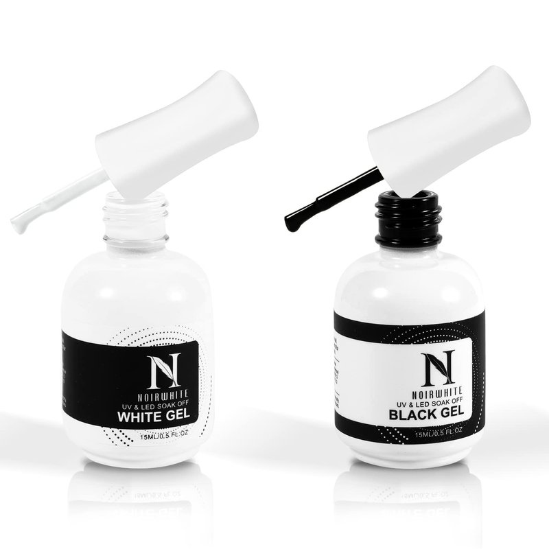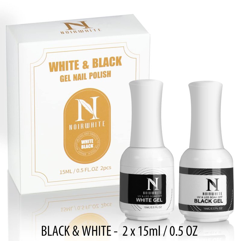 noirwhite Black White Gel Nail Polish, 2Pcs 15ml Gel Polish Set, Soak Off UV LED Nail Gel Polish Long Lasting Nail Art Starter Manicure Salon DIY at Home Design Decorations Nail Art Design