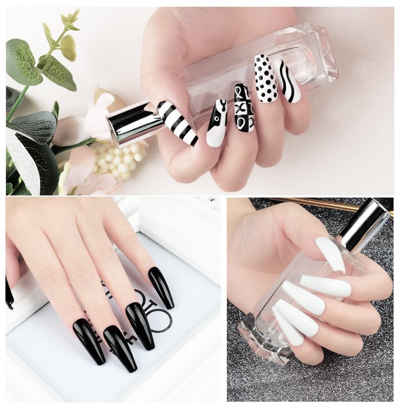 - CLASSIC GEL NAIL POLISH: Black and white nail art is one of the most classic colors for nail art design, which would always remains in the buzz and never run out of fashion.