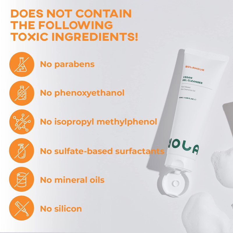 Introducing Nola Hour’s Vegan Gel Cleanser, a game-changer in skincare. Formulated with plant-derived natural surfactants, this facial cleanser for men and women is a gentle alternative to chemical-laden products that ensures less skin barrier damage. It's a perfect choice for those with dry and sensitive skin as it leaves behind no dryness or irritation after washing.