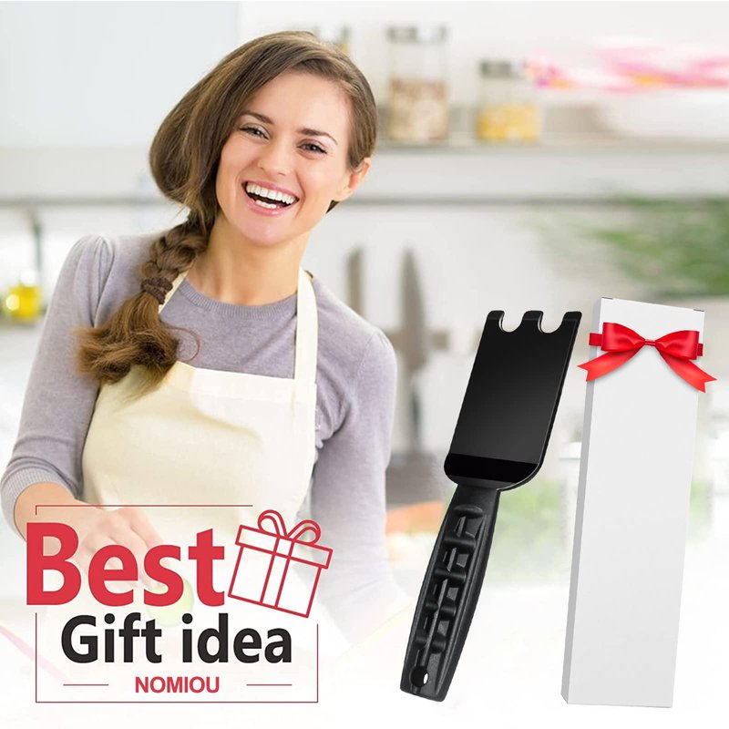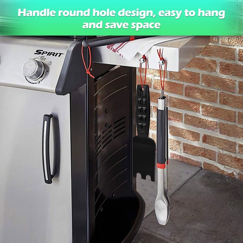 - Cooking and Cleaning: The spatula has precision cutting grooves 0.44" apart from each other, which can perfectly fit the grooves of the grill, easily flip burgers, meats and vegetables, and can be cut into small pieces and presented on the plate. It can scrape both sides of the grooves Stuck food scraps and the most stubborn burnt pieces!