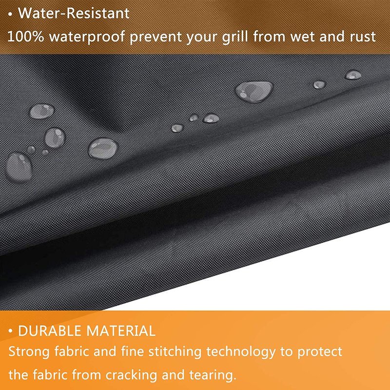 - 【Waterproof Design】 water resistant PVC coating, the tough fabric provides a powerful guard against any weather: Snow,Hail,rain and wind etc,and gives your grill all year round protection. When you storage the cover, keep it dry for longer life.