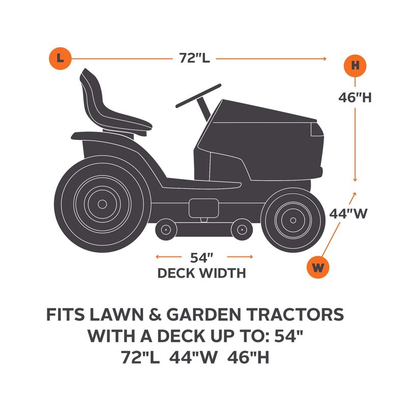 - 【Universal】Fits Decks up to 54",(72"x46"xH54"), suitable for most riding lawn mower brands,including Toro, Craftsman, Honda, Husqvarna, John Deere, Law Boy, Greenworks and Troy Bilt.