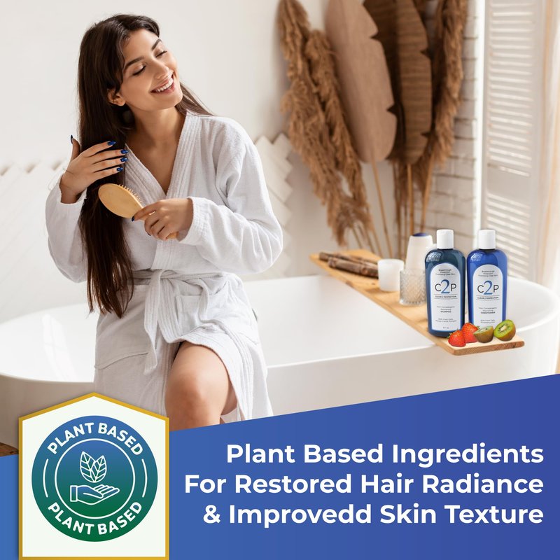 Other hair care products rely on waxy, pore blocking ingredients such as parabens and other comedogenic ingredients. These actually exacerbate breakouts and hair damage that you struggle to avoid. Clear 2 Perfection eschews those comedogenic ingredients, opting instead for a gentler plant-based formula that is rich in enzymes and antioxidants. C2P Formula features Fresh Cells suspensions of strawberry and kiwi to hydrate and repair hair follicles and inflamed scalp and skin, healing and regenerating cells for shiny, bouncy hair and unblemished hairline, shoulders and back.