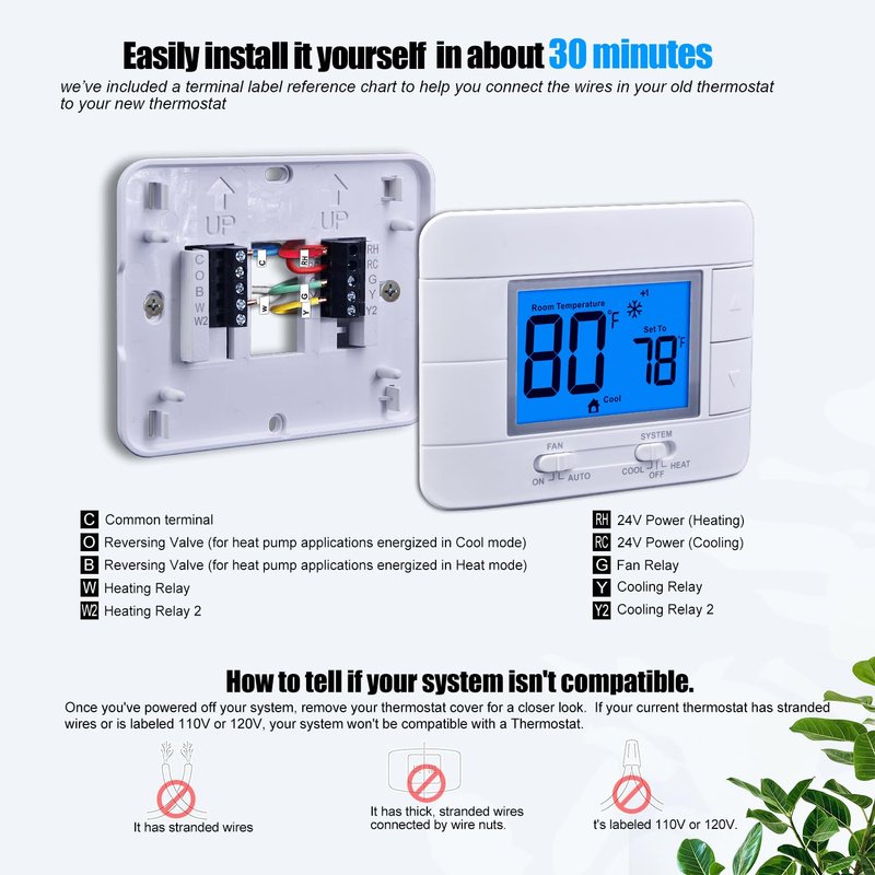 - Our Non-Programmable Thermostat 2 heat/ 2 cool multi-stage systems is designed for easy installation and operation. (Kind reminder: Before purchasing, please check if this thermostat is compatible with your old thermostat)