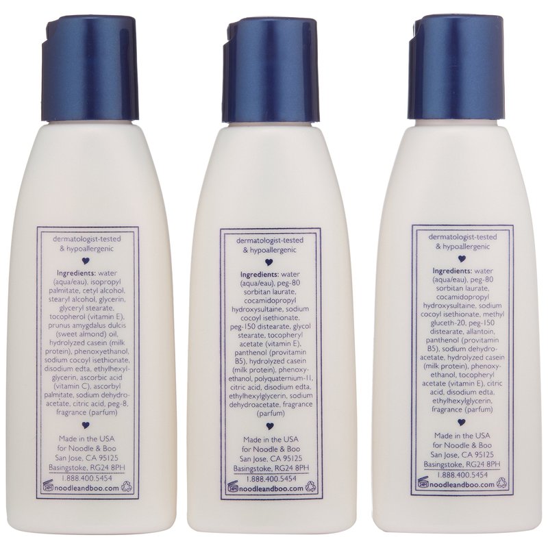 Noodle & Boo Essential Care 3 Piece Kit Super Soft Baby Lotion(2 Oz), Extra Gentle Shampoo(2 Oz) and Soothing Body Wash(2 Oz)