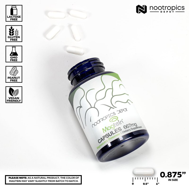 Nootropics Depot Magtein Magnesium L-Threonate Capsules | 180 Count | Mineral Supplement | Natural | Supports Mitochondrial Function | Boosts Energy and Cognitive Function
