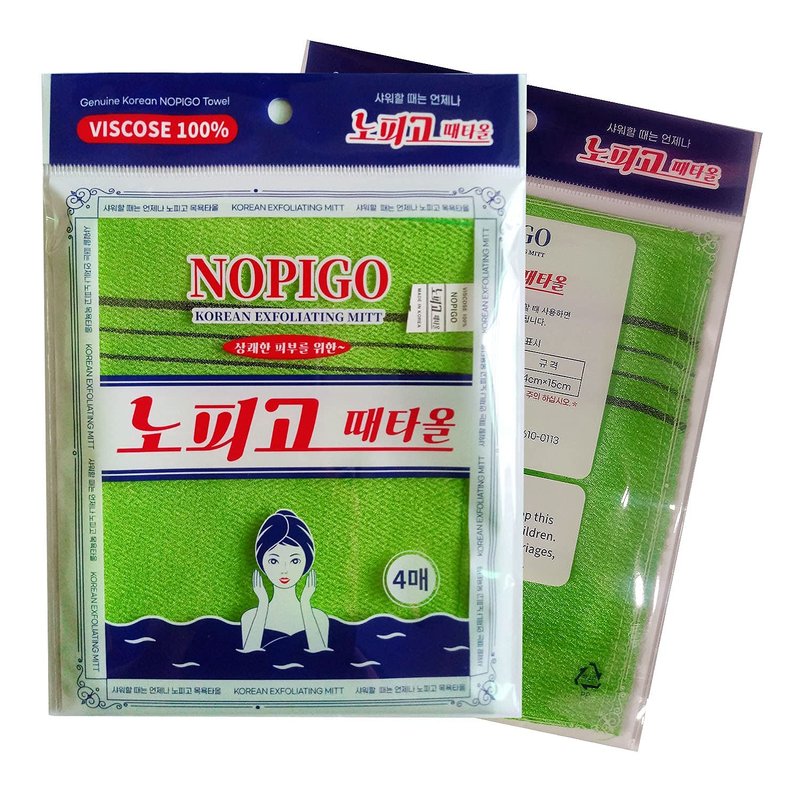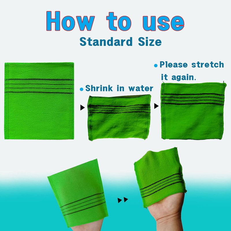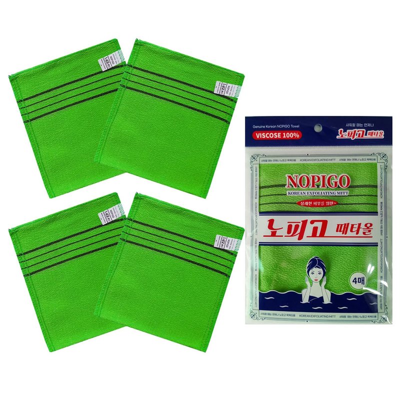 NOPIGO Korean Exfoliating Body Scrubber for Shower 4p(Green), Asian Exfoliating Bath Washcloth for Dead Skin, Bath Sponge